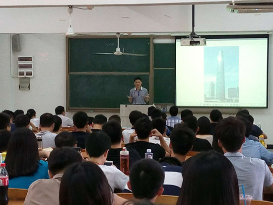每一个模块和知识点,韩教授都结合了自身参与设计的高层建筑(如横琴国贸大厦、珠江新城西塔结构、琶洲中州中心二期)作为例子进行深入分析。期间韩小雷教授还回答了同学们关于建筑风抗与抗震的矛盾关系等问题。