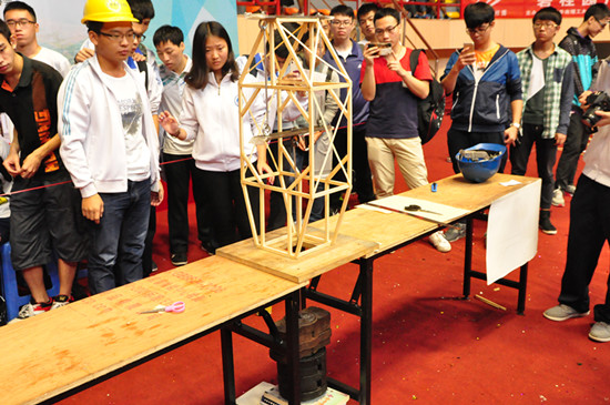 本网讯(记者 余仙梅)10月30日上午9:00,“碧桂园广清杯”第十三届华南理工大学土木结构设计竞赛在华南理工大学五山校区海丽文体中心隆重举行。参赛的选手来自广州各大高校470多支队伍,1500多人。我校土木工程学院三支队伍从众多选手中脱颖而出,“挑战组一队”谢健、邓清、冯立阳、贝萍萍荣获挑战组三等奖,“趣味组三队”林嘉材、温婉琳、钟容娇、贺海区荣获趣味组三等奖,“趣味组五队”赖秋如、黄莹莹、李洁荣获趣味组优胜奖。