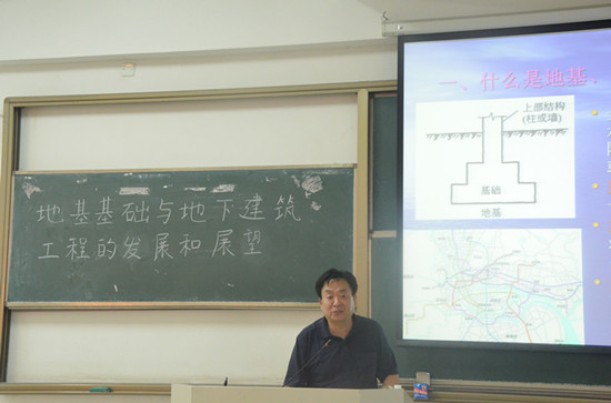 讲座伊始,魏德敏教授表示地下交通运输、市政、工业和水利地下建筑工程(如铁路隧道和道路隧道、地下铁道和水底隧道以及各种用途的输水和其他的水工隧道)为老百姓的日常生活带来了极大的便利。而地基基础是地下建筑工程的生命线。地下建筑地质条件复杂多变,地基与地下工程技术要求高,所以,魏院长希望在座的师生通过这次讲座可以很好地了解相关的专业知识,打好基础,汲取先进技术理念。