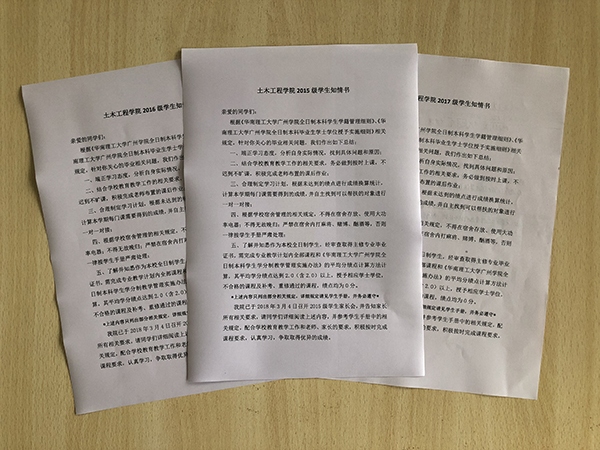 据悉,土木工程学院已于本学期开学初召开了2015级、2016级学生家长会,设计并建立起校家共管新格局,并针对各年级绩点较低的学生签订学生知情书,从学习态度、上课情况、学习规划、宿舍规定等方面进行全面要求,并由学生本人找到可对其进行学习指导的优秀学生进行“一帮一”结对,并经学生本人、帮扶对象、班主任、辅导员四方共同签名确认,全方面提高学生的整体水平和学习态度,已取得了较好的效果。