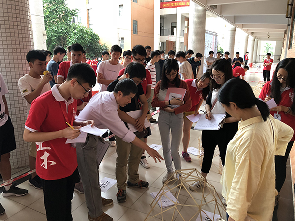 本次结构大赛共有84支队伍参加,39组挑战组和45组趣味组,参赛队伍不仅包括土木工程学院学子,也不乏珠宝、建筑等兄弟学院的同学们。据悉本届土木结构设计大赛挑战组参考第十二届全国大学生结构设计竞赛广东省赛的赛题,不仅提高了挑战组的难度,也增加了趣味组的得分项目即微信投票环节,比赛选拔出的优秀队伍将参加全国大学生结构设计竞赛广东省省赛。