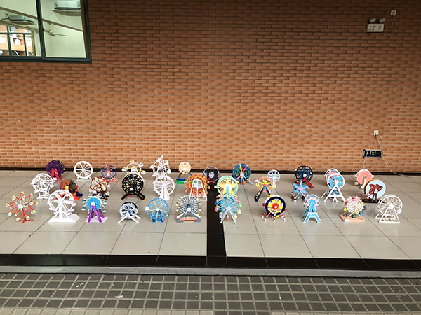 本届土木结构设计大赛趣味组比赛以“摩天轮”为主题,各参赛队伍都提交了精美绝伦的作品,评委老师从特色性、适用性、美观性和模型制作四个方面进行评分,最终评出一等奖一个,二等奖二个,三等奖三个;挑战组则包括理论方案、模型制作和加载表现三个部分,其中加载表现分值占比百分之八十,最终综合统计分数,得出本次比赛获奖者,一二三等奖各一名。