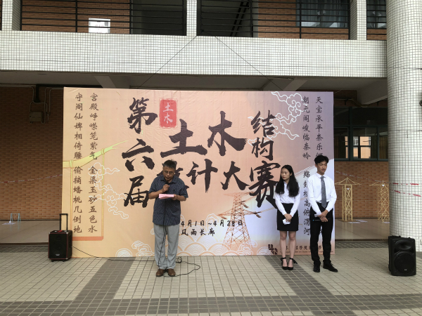 大会伊始,张原教授上台致辞。他表示,积极参与结构设计大赛可以提高挑战组同学们对理论知识的了解、增强实践动手能力及创新创造思维,趣味组比赛则侧重于培养同学对结构的兴趣,普及结构知识,加深对结构设计的了解和认识。他希望,这次比赛成为同学们切磋技艺展现自我的舞台,在学生中刮起学以致用的良好氛围,促进同学间的学习。