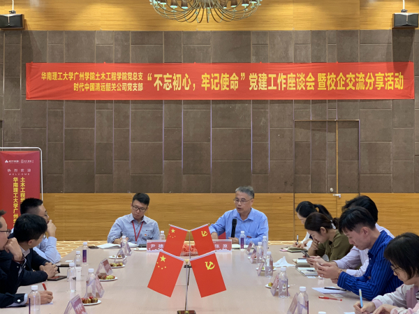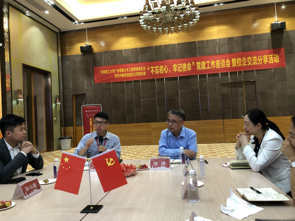 下午13时,土木工程学院党总支和时代中国清韶公司党支部正式开启了“不忘初心、牢记使命”党建工作座谈会。首先由时代中国清远韶关公司党支部宣传委员朱子飞汇报工作,他介绍了时代中国清远韶关公司党支部的组成、如何进行立体化党建学习,推动初心工程;如何让党建工作在品牌、员工和活动中充分落实;如何开展四大优化活动,让员工能够更快的实现向往的生活;如何推展“廉洁时代行主题活动”确保组织能够在不断的发展中始终保持“不忘初心、劳记使命”的优秀传统。