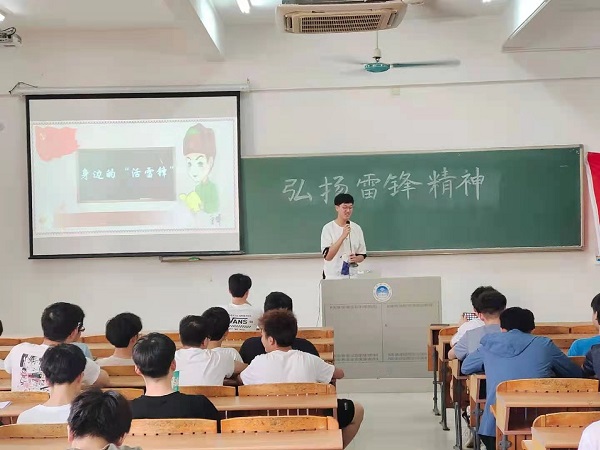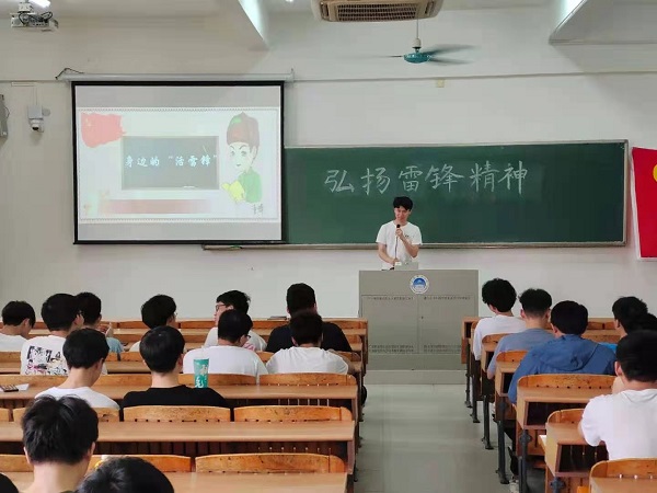 在土木工程学院2020级全体同学激情高昂的国歌歌声下,“弘扬雷锋精神,传递爱心力量”主题团日活动正式拉开帷幕。陈伟雄同学以PPT的形式对雷锋的生平进行介绍,通过图文并茂的方式,刻画出雷锋同志的鲜活模样、阐述雷锋奉献给国家和人民的丰功伟绩事迹,并传达了关于“雷锋精神”学习的主旨内容与深刻涵义,让同学们对雷锋及“雷锋精神”有了进一步的了解。雷锋的事迹使他成为我们学习标杆、道德模范,雷锋精神更是我们需要用心、倾心、专心学习与效仿的重要精神引导。他的生命之树常青、精神价值永在,雷锋用其短暂的一生诠释了中华民族的传统美德和人们对于追求“真、善、美”的新高度。