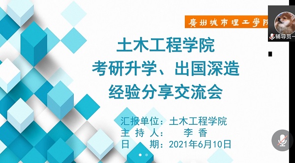 据悉,进行经验分享的学生代表李双斌(2017级)被广东工业大学土木水利专业(专硕)录取,潘景岚(2017级)被五邑大学土木水利专业(专硕)录取,张仲捷(2016级)被广州大学土木水利专业(专硕)录取,李镕辉(2017级)被新南威尔士大学工程管理专业录取。