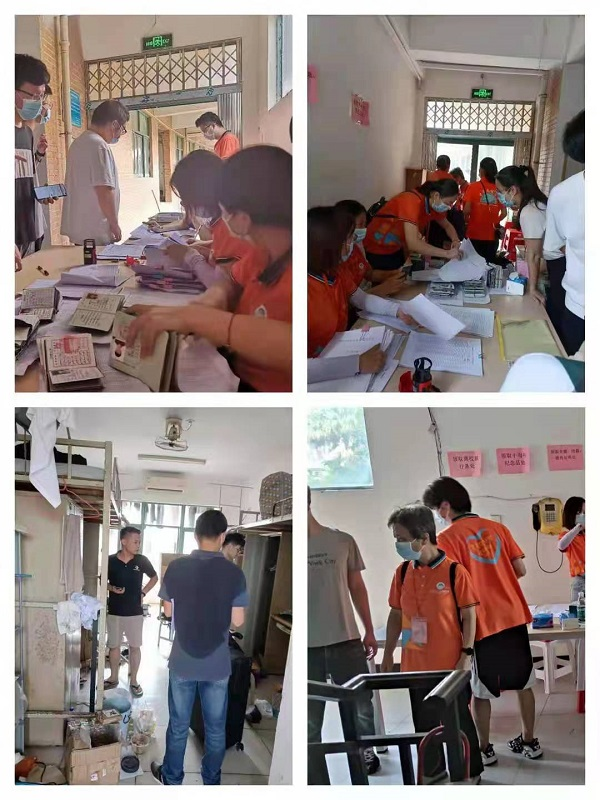 为确保毕业生安全顺利办理退宿手续,学院提前部署、全面落实,推出退宿服务,特别是安排学生党员到毕业生宿舍调查,进行问题收集和登记,争取在办理手续当天能提前集中解决相关问题。