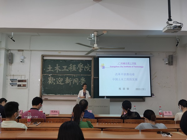 本网讯(记者 郑渊虬 李香)为引导广大青年大学生坚定道路自信、理论自信、制度自信、文化自信,培养学生的家国情怀、社会责任与担当,9月1日下午,土木工程学院院长魏德敏教授在A5-201以《改革开放推动中国土木工程的发展》为主题讲授思政第一课。学院全体教师及2021级专升本新生共105人聆听了讲课。