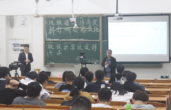 讲座伊始,土木工程副院长张原为同学们隆重介绍刘庭金教授,并就其学术作品、研究领域、获奖荣誉等作讲析。刘庭金教授以广州地铁的建设与发展为开场,谈到广州九号线地铁的建设工程,让同学们明白了地铁建设的各个阶段的工作进程。在讲座中,刘庭金教授着重分析讲解建设地铁过程中关于涉高架桥的影响,并对产生这些影响的原因和解决方法举例分析。在地铁建设进程中,各种纷繁复杂的事故时有发生,刘庭金教授旁征博引,列举了几个典型事故案例并进行分析;关于如何来解决应对,并妥善处理这些事故,他也有针对性地提出了科学解决方案。