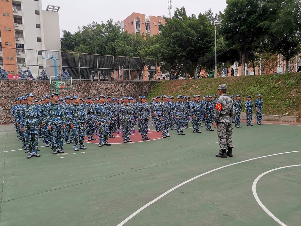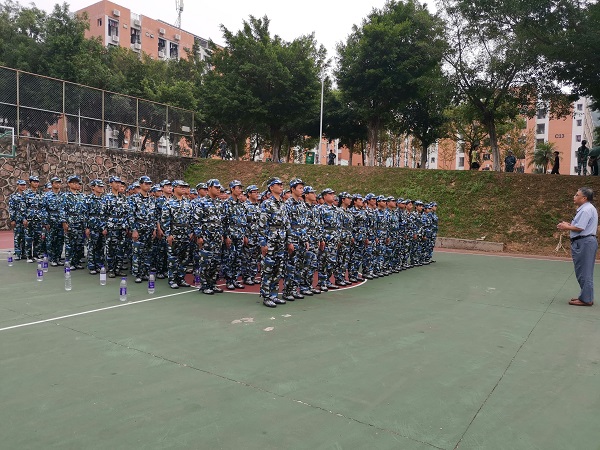 伴着清晨初升的艳阳,放眼望去,训练场上四处可见英姿飒爽的军训学生,他们喊着洪亮整齐的口号,伴着整齐统一的步伐,一遍遍在操场上做着训练项目。