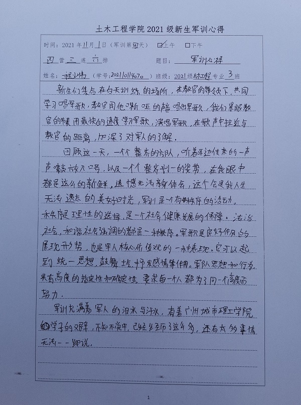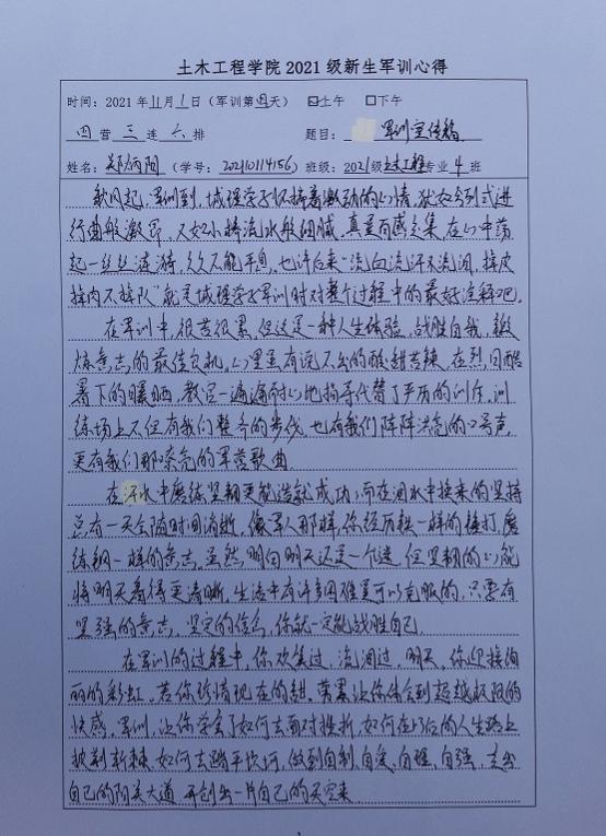 军训心得2(2021级土木工程4班郑炳阳 供稿)