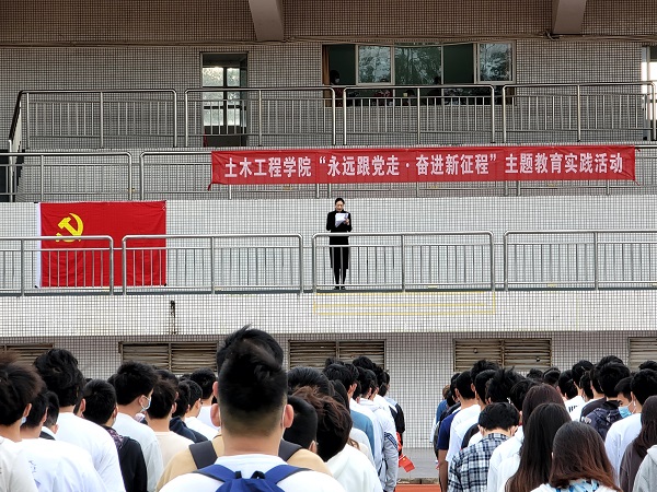 本网讯(记者 李香)阳春三月,清风吹拂,3月7日,土木工程学院在学校足球场举行升国旗仪式暨“永远跟党走、奋进新征程”主题教育实践活动。这是全院师生开展爱国主义教育的重要实践活动之一,是传承红色文化、弘扬爱国主义精神的深切表达。学院书记郑梅、党总支副书记,及团委副书记、辅导员代表、班导师代表与学院各年级学生共同参加。