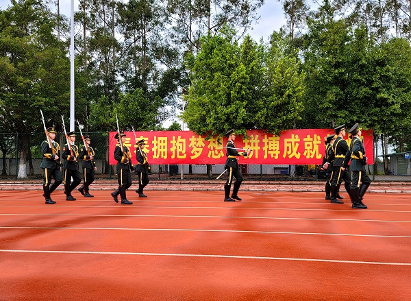 上午7点55分,伴随着激昂的《中国人民解放军进行曲》,英姿飒爽的国旗护卫队队员们步伐整齐划一、节奏铿锵有力,护送鲜艳的五星红旗进场。8点整,全体师生齐唱《中华人民共和国国歌》,目光炯炯、深情饱满地注目着五星红旗,心怀对祖国的无限热爱和崇高的敬意,共同见证五星红旗冉冉升起,迎风飘扬。