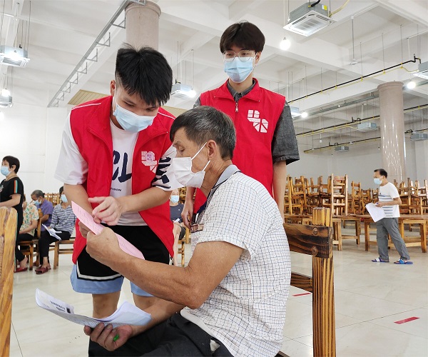 在出发前,实践团指导老师李香、王超向村委会介绍了此次活动的目的和意义。为了更快地与当地村民建立联系,更好地融入村民的生活,实践团在当地村委会干部罗燕栅和罗金炽的带领下,协助南庄村开展了为期3天的“爱心敬老,情暖夕阳”——65岁及以上长者免费体检活动。在活动过程中,实践团对当地的村民进行了访谈和调研,并深入了解当地村民对红色文化的认知与实践程度等情况,通过发放问卷调查与访谈村民等方法,耐心地为在场各村民讲解红色文化。在实践团的帮助下,老人们对实践团提出表扬,充分彰显了新时代大学生敢于奉献,勇于担当的青春风采。