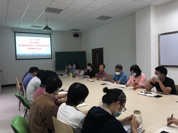 本网讯(记者 杨文娟)11月16日下午,土木工程学院组织全体教职工召开深入贯彻落实党的二十大专题学习会,同时结合近期疫情防控工作的严峻形势,召开全院教职工大会,就近期工作进行部署。会议邀请了学校副校长魏德敏教授出席,学院书记郑梅、副院长张原以及全体教职工参加会议。
