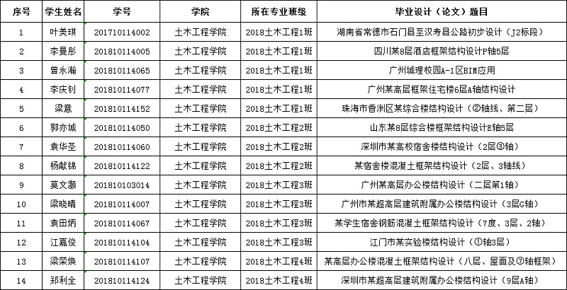 优秀毕业设计(论文)学生名单