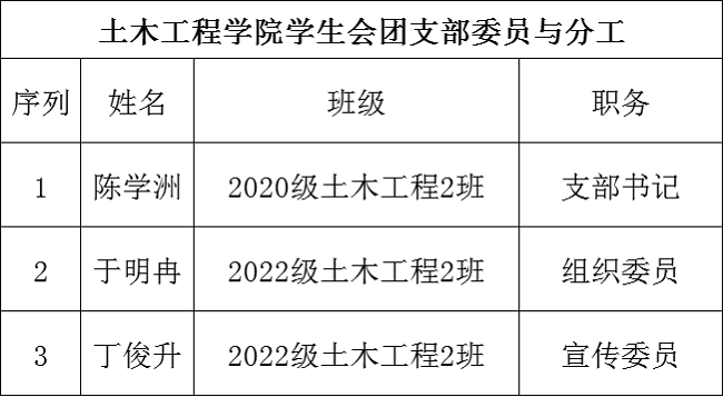 2022-2023学年土木工程学院学生会团支部委员与分工