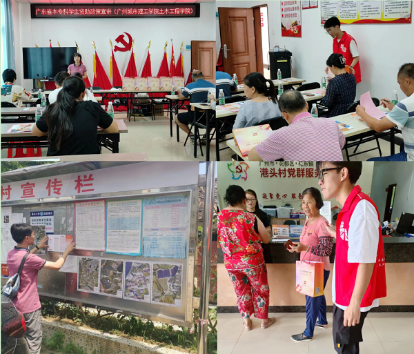贯彻落实党的二十大提出的“完善覆盖全学段学生资助体系”,广东省出台本专科学生资助政策,为广大学子提供充沛的福利保障。实践团也借此契机专门组织开展本专科学生资助政策宣讲会,给居民讲解本专科学生的相关资助政策,以及生源地信用助学贷款申请指南;参会民众积极提问,现场氛围互动有序。纵观港头村的历代史实,古村历史源远流长,受曾氏先辈的影响,也曾涌现出数代文人墨客,为村子增添雅致的别样淳朴民风,培养出栋梁之才。在与村委工作人员的访谈中得知,随着花都区花东镇周边现代化产业的聚集发展,需要众多需要有专业技能的青年人才去就业,村子特别重视学生的教育工作,无论是选择附近产业园的工作还是在村内经营发展特色产业都需要专业的学识和能力。通过本次宣讲,也希望会给村内的学子提供系统的国家资助政策解读,助力学子对个人求学有新的规划,也将为助力古村的可持续发展提供源源不断的人才储备。
