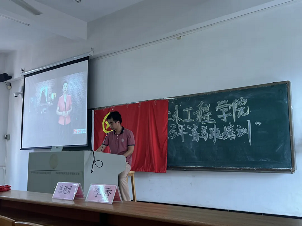 培训期间,通过观看相关学习视频,组织同学们深刻领悟习近平新时代中国特色社会主义思想的内涵,让更多的青年大学生了解到国家时政热点话题,认识到为国家争取荣誉的青年才俊事迹,勉励青年学生要做立大志、明大德、成大才、担大任的时代新人,为实现中华民族伟大复兴贡献个人力量,为全面建设社会主义现代化国家、全面推进中华民族伟大复兴而团结奋斗。
