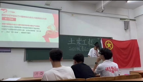最后,在本次培训学习的最终汇报环节,要求同学们以“五四青年节”“党的二十大”“学习习近平新时代中国特色社会主义思想”等为主体进行学习成果汇报,同学们纷纷踊跃参加,精心制作演讲作品,展示培训学习心得体会。