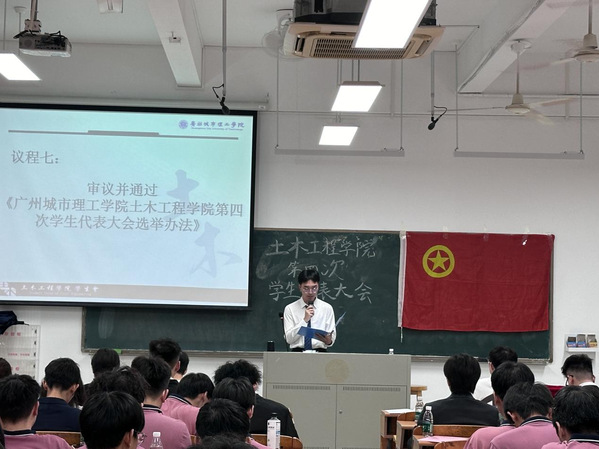 土木工程学院学生会主席陈开赐随后作了大会筹备工作报告,并对第三届学生会的工作进行了回顾与总结。大会的核心议程之一是选举产生第四届学生会委员会和主席团。选举过程由总监票人张珊珊主持,经过严谨的投票和计票环节,最终选举出了新一届的学生会委员和主席团成员。选举过程中,代表们认真履行职责,以公正、公平、公开的原则,确保了选举的顺利进行。此外,大会还审议并通过了《广州城市理工学院土木工程学院第四次学生代表大会代表资格审查报告》、《选举办法》以及《监票人资格审查报告》等重要文件,为学生会的规范化运作提供了制度保障。
