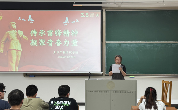 本讯网(吴子昕 周之洋 雷诗雅)为传承雷锋精神,凝聚青春力量,3月26日下午,土木工程学院团委学生会在A5-112教室组织开展“青春‘锋'采,‘砼'心筑梦”主题团日活动。学院团支部副书记张珊珊、组织部负责人古舰洋、白儒霄及学生代表120余人参加活动。