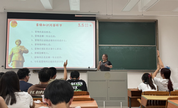 在知识问答互动环节,张珊珊通过设计“雷锋生平”“经典语录”“精神传承”三大模块,以趣味竞答形式检验学习成效。现场同学踊跃参与,在轻松的氛围中深化了对雷锋精神系统性、时代性的认知。土木工程2022级学生王树凯表示:“这种寓教于乐的形式,让理论学习既有深度又有温度。”