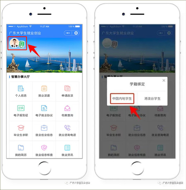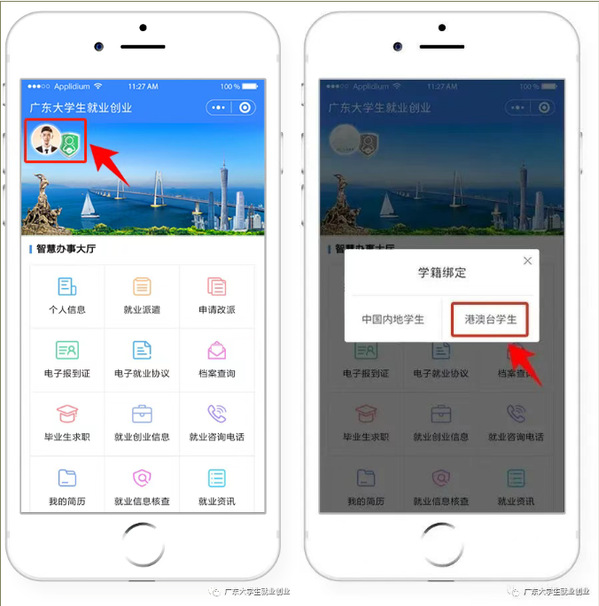 根据广东省教育厅相关要求,为做好毕业生就业管理与服务工作,推广使用广东省高校毕业生就业创业智慧服务平台(以下简称就业服务平台),请毕业生们关注“广东大学生就业创业”官方微信公众号,进行毕业生生源信息绑定(操作流程详见后文有关介绍)。毕业生绑定生源信息后,可通过就业服务平台学生端办理就业信息上报、电子报到证、申请改派、电子三方协议、档案查询、毕业生求职等就业手续。该平台对于毕业生非常重要,务必认真按指南逐条填写!