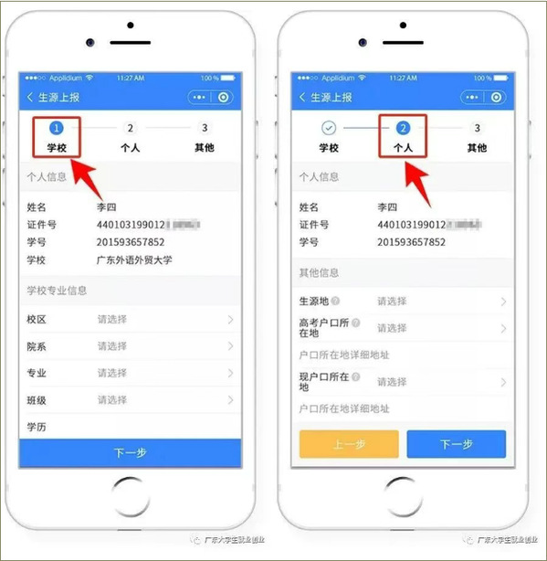 【高考户口地】:根据自己实际情况填写,具体到区,如:广东省佛山市南海区
