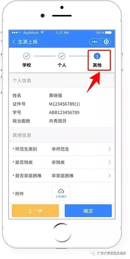 2、依次填写“学校”“个人”“其他”三部分信息。