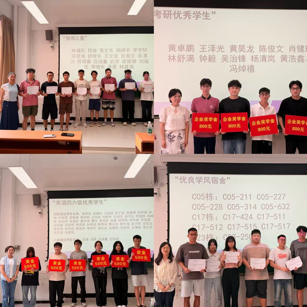 会上,李韦华宣读了《关于表彰土木工程学院2025学年度学风建设先进集体及个人的决定》。本学期,经学院评审,共表彰3名“百佳宿舍长”,11间“优良学风宿舍”以及“英语四六级优秀学生”42人、“考研优秀学生”11人、“阅读之星”18人。郭培虹和学院领导老师为获奖代表颁发荣誉证书,并鼓励他们继续发挥榜样示范作用,在追求卓越的道路上实现青春梦想。