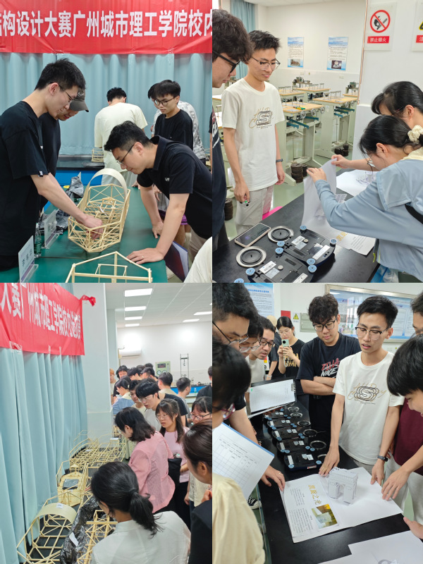 本网讯(记者 彭婧 王秋湛)为营造浓厚的校园学术氛围,促进科技创新活动的普及性,提高学生科技创新和专业技能能力,培养创新意识和团队精神,5月14日-5月16日,土木工程学院在B1、B7实验室举办了第十八届全国大学生结构设计竞赛广东省赛校内选拔赛暨广州城市理工学院第十一届结构设计大赛(下称“结构设计大赛”)。土木工程学院院长季静,党总支书记李韦华,土木工程学院副院长苑苗苗,土木工程教研室主任赵小芹,智能建造教研室主任李牧及学院全体师生共同参与本次大赛。