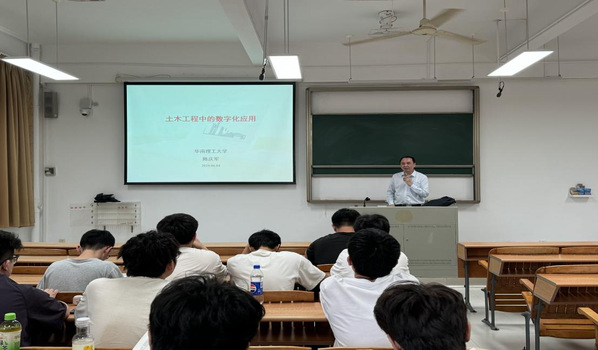 本网讯(记者 葛婷婷)2025 年 6 月 4 日下午,土木工程学院 “砼筑未来” 学术系列讲座第 87 场在 A1-105教室成功举办。华南理工大学陈庆军教授为学院 2022 级土木工程及智能建造专业、2024 级土木工程(专升本)专业学生带来了一场以“土木工程中的数字化应用”为主题的精彩讲座,深入剖析了数字化技术在土木工程领域的广泛应用以及前沿动态,为学生开启了一扇通往行业数字化前沿的窗口。