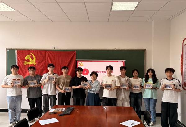 紧接着,李韦华和王超为每位毕业生党员颁发赠送党支部纪毕业生党员纪念合照。