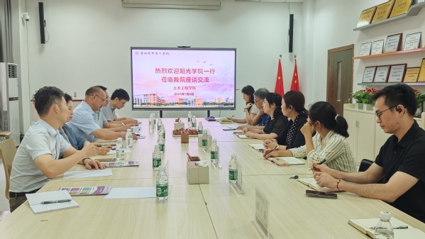 本网讯(记者 赵小芹)7月5日,阳光学院智能建造学院谭立新院长一行莅临我校土木工程学院,开展了一场以“学科建设及发展方向”为主题的交流活动,并参观了土木工程学院的实验室。土木工程学院院长季静、副院长苑苗苗及学院相关教师热情接待了来访嘉宾,双方就学院发展、学科建设以及合格评估经验等议题进行了深入探讨与交流。